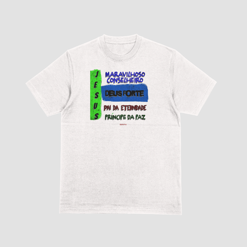 Camiseta Cristã “Atributos de Jesus – Isaías 9:6”